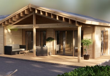Hoogwaardige blokhutten uit 44 mm dik Scandinavisch naaldhout, combineert een rustieke uitstraling met een duurzame constructie. Dankzij de royale wanddikte biedt dit model een uitstekende natuurlijke isolatie en stabiliteit, waardoor het object uitermate geschikt is als luxe tuinkantoor, gastenverblijf of hobbyruimte.